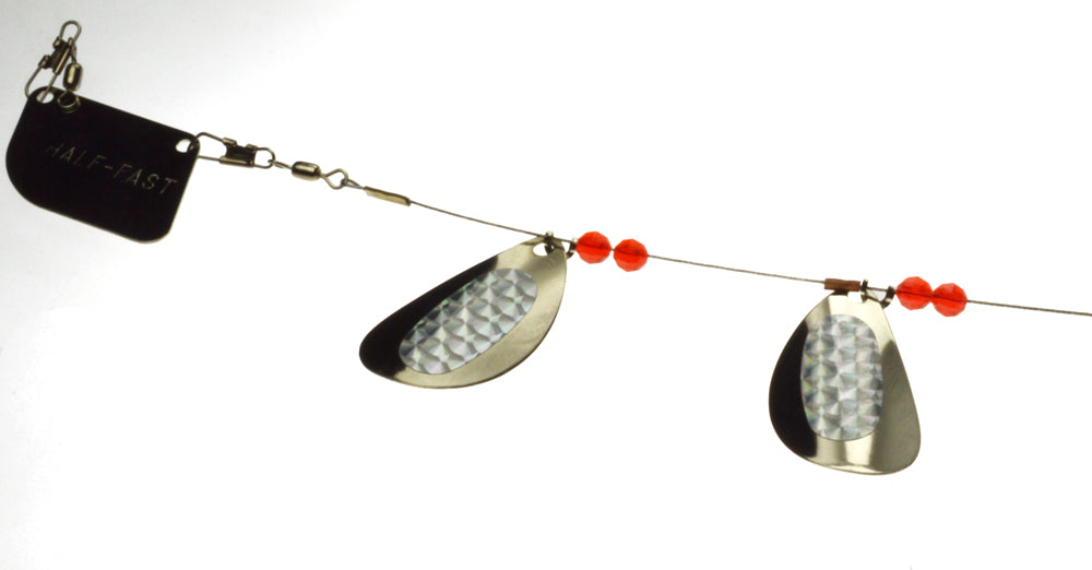 Uniquely contoured blades spin in opposite directions, virtually eliminating line twist while creating an enticing counter-rotational flash. Great for trout or Kokanee at any depth. The most popular Half-Fast lake troll design ever!