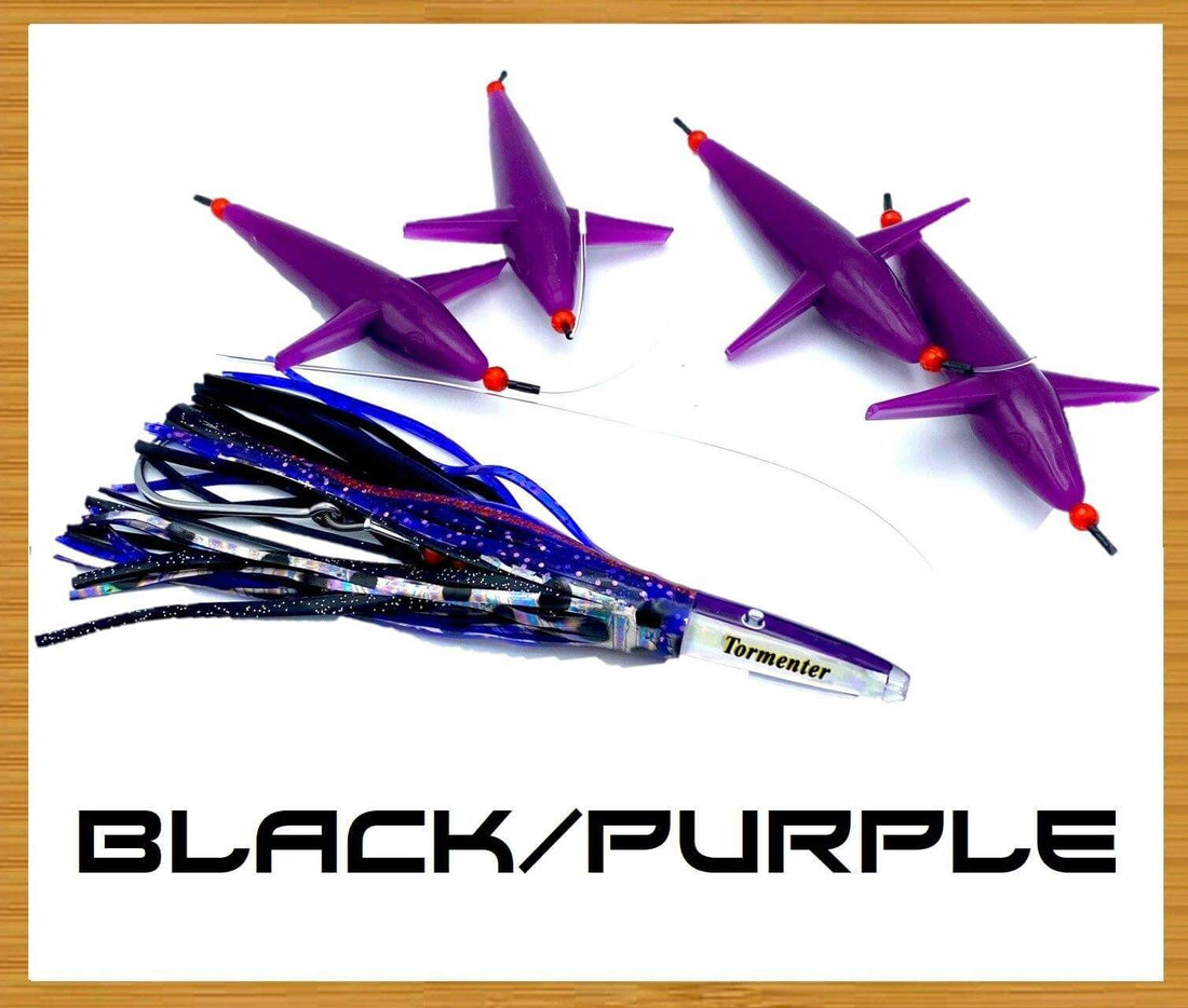 Four of our 5” Poly Birds in line in front of our Outstanding performer the TMK. All rigged on seven feet of 200lb Momoi with our 7691 Double Strength Stainless Steel hook and packaged in our 10 x 10 inch lure bag. Great for: Tuna, Mahi, Billfish, and even Wahoo (if he doesn’t cut you off). This rig should be in your arsenal for ready deployment always. Make sure you have it in one of your “Go To” colors as well as a couple others.